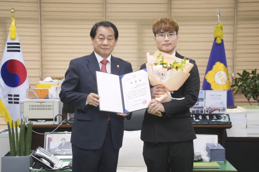 김현수 주무관은 상임위원회 활동 지원 적극 추진과 함께 조례 제정, 5분 발언 작성 지원 등 정책지원관 업무, 진정서 처리 지원, 위원회 회의 진행 및 현장 방문 지원 등의 의정활동 지원 업무를 원활하게 수행했으며 의정활동 지원 및 부서 업무추진 등을 적극 지원한 공로이다.