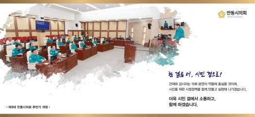 또한 안동시의회의 원활한 의정활동을 위하여 끊임없이 노력하여 왔으며, 의정팀 업무의 빈틈없는 추진을 위하여 임시회, 정례회, 월례회 등 의정활동 관련 행사 및 간담회 지원 등을 위한 타 지방의회와의 유기적인 의정교류를 실시하여 의정업무의 발전과 활성화에 많은 노력을 기했다.