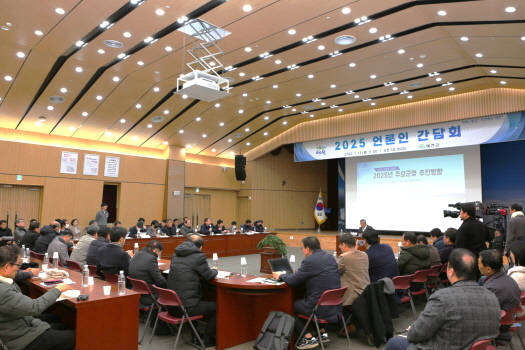 예천군(군수 김학동)은 을사년 새해를 맞아 군정 성과와 올해 군정 운영 방향을 공유하기 위해 13일 오전 11시, 군청 대회의실에서 언론인 간담회를 개최했다. 간담회는 김학동 군수와 관계공무원, 언론인 50여 명이 참석한 가운데 2025년 군정 운영방향 및 주요사업, 질의응답과 자유토론 순으로 진행됐다.