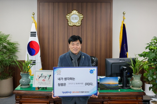 한편, 영주시의회는 의회 청렴도 향상과 생활 속 청렴 실천을 위해 의원들이 제안한 “청렴한마디”를 매달 영주시의회 홈페이지 ‘청렴소통공간’란에 게시하여 의원들의 청렴실천 의지를 확인할 수 있는 창구로 활용할 예정이니 많은 시민분들의 관심을 바란다고 밝혔다.