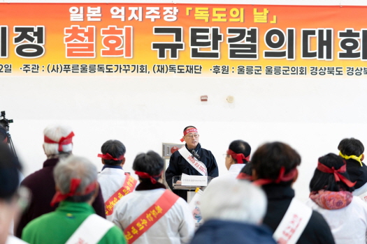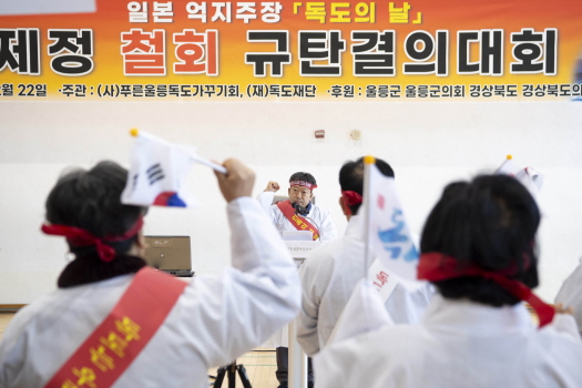 울릉군은 지난 2월 22일(토) 오전 11시 울릉한마음회관에서 (사)푸른울릉독도가꾸기회 주관으로 일본의 터무니 없는 '다케시마(독도)의 날' 조례 제정에 대해 강력히 규탄하고, 우리의 영토와 주권 사수 결의대회를 개최했다.