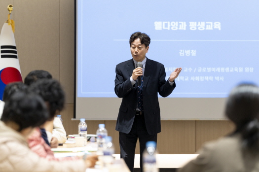 1부 개강식 후 2부 순서로는 한동대학교 글로벌미래평생교육원장이자 한동대학교 상담심리사회복지학부 교수이신 김병철 교수의“웰다잉과 평생교육”이라는 주제의 특강으로 2025년 경북도민행복대학 울릉군 캠퍼스의 개강을 활기차게 알렸다.