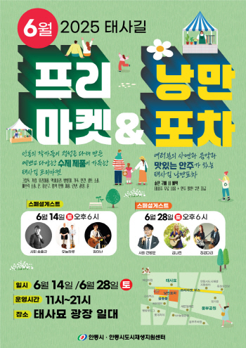 • 안동시는 지난 6월 14일(토)에 이어 6월 28일(토)에도 태사길 일원에서 원도심 활력 회복을 위한 ‘2025 태사길 프리마켓’을 개장한다.