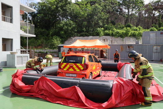 이번 시연회는 소방대원들이 효과적으로 화재 전술방안 수립과 보유중인 장비 조작 및 사용법을 숙달하기 위해 개최했다. 전기차는 화재 발생 시 배터리가 차량 하부에 있어 물을 분사하더라도 배터리 ‘열폭주’현상으로 진화에 어려움이 있고 폭발의 위험까지 있어 안전사고가 우려된다.