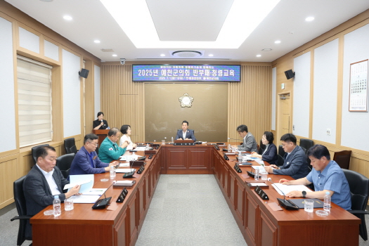 예천군의회(의장 강영구)는 1일 오전 10시, 의회 특별위원회실에서 군의원과 의회사무과 직원을 대상으로 2025년 반부패‧청렴 및 갑질예방 교육을 실시했다.