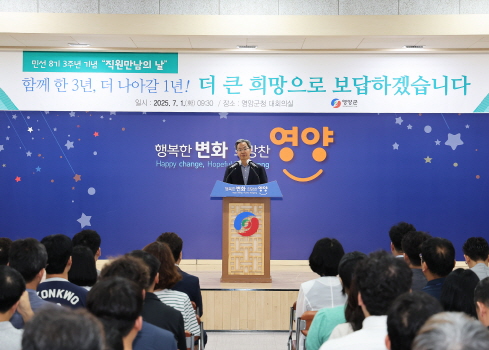 영양군(군수 오도창)은 민선 8기 출범 3주년을 맞아, 7월 1일 군청 대회의실에서 “직원 만남의 날”을 개최하고, 지난 3년간 군정 성과를 되돌아보며 새로운 도약을 다짐하는 뜻깊은 자리를 가졌다.