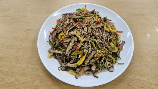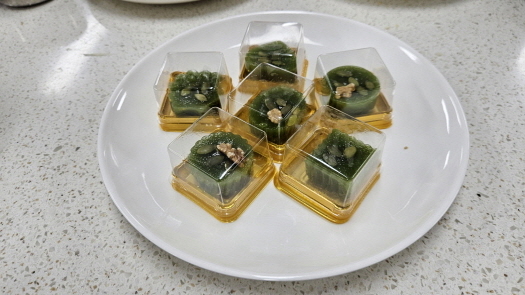 음식메뉴는 울릉도 명이분말과 한천, 앙금 등을 이용하여 명이향이 짙게 나는 명이양갱과 약성이 좋은 울릉도물엉겅퀴를 주재료하여 찹쌀과 앙금을 활용한 물엉겅퀴밥압찰떡, 삼나물과 파프리카를 이용한 삼나물파프리카잡채, 울릉도 더덕순과 더덕, 가지를 이용한 더덕순더덕새싹말이, 전호분말과 우유를 이용한 전호슬러시 등 새로운 음식메뉴로 회원들은 즐거운 마음으로 조리법을 배우면서 즐거운 시간을 보냈다.