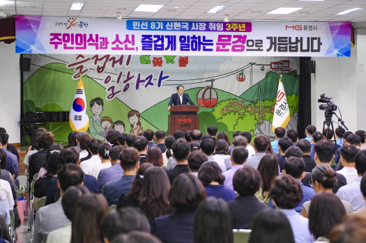 문경시는 7월 1일(화) 오전 시청 대회의실에서 신현국 시장의 민선8기 취임 3주년을 기념하는 정례조회를 개최했다.