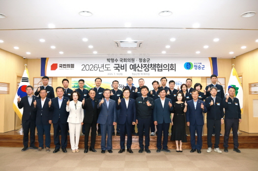 청송군은 박형수 국회의원과 지난 10일 군청 제1회의실에서 2026년도 국비 예산확보를 위한 지자체와 국회 간 소통을 강화하고자 ‘2026년도 국비 예산정책협의회’를 개최했다.