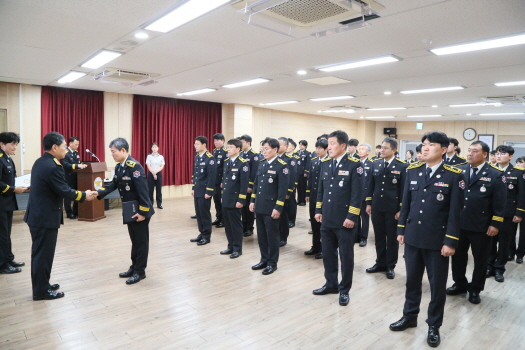 이번 수여식은 전입자 33명과 내근부서 발령자 9명 등 총 42명의 소방공무원을 대상으로 진행되었으며, 임용장을 전달하고 새로운 출발을 격려하는 자리로 마련됐다.