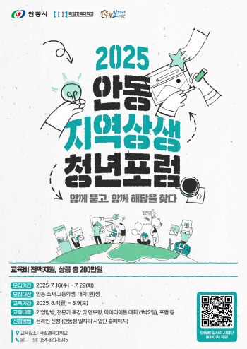안동시와 안동형일자리사업단은 7월 16일부터 7월 29일까지 ‘2025 안동 지역상생 청년포럼’ 참여자를 모집한다.