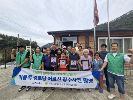직․공장새마을운동 안동시협의회(회장 이건호)는 7월 20일(일) 임하면 고일미등록 경로당과 이번 산불로 피해를 입은 임하면 고곡리 선진이동주택 어르신들을 대상으로 장수사진 촬영 봉사를 진행했다.