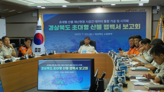 경상북도 소방본부는 지난 3월 발생한 의성, 안동, 영양, 청송, 영덕 등 5개 시군의 산불 현장 자료를 분석·활용해 ‘경상북도 초대형 산불 맵백서’를 제작하고, 25일 보고회를 개최했다.