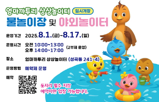 안동시는 여름을 맞아 시민과 관광객에게 시원한 여름 휴식공간을 제공하기 위해 ‘엄마까투리 상상놀이터’ 내 물놀이장과 야외놀이터를 8월 1일부터 17일까지 임시 개장한다.