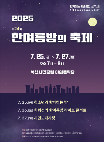 상주시 '제24회 한여름밤의 축제'가 한국예술문화단체총연합회 상주지회(회장 김성석)의 주최로 지난 7월 25일부터 27일까지 3일간 북천시민공원 야외음악당에서 성황리에 개최했다.
