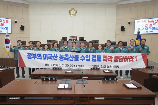 이에 안동시의회는 △미국산 농산물 수입 확대에 대한 모든 협상 논의를 즉각 중단하고, 관련 의제를 협상 테이블에서 전면 철회하라 △농업을 통상 협상의 교환 조건으로 삼지 않겠다는 국가적 원칙을 분명히 설정하고, 이를 법제화하라 △식량주권 확보와 지역 농업 보호를 위한 실질적이고 구체적인 정책 대책을 즉시 마련하고 실행하라