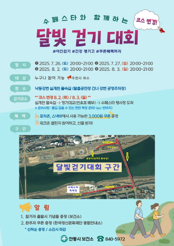 안동시는 ‘2025 안동 수(水)페스타’ 연계 행사로 진행되는 ‘달빛걷기대회’의 코스를 8월부터 새롭게 변경한다.
