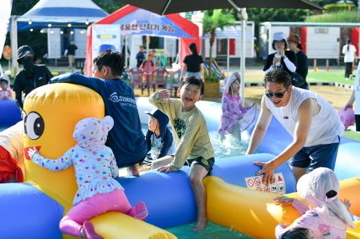 축제장에는 대형 슬라이드, 물놀이장, 에어바운스 등이 설치된 ‘워터파크존’을 중심으로, 사방에서 시원한 물줄기가 뿜어져 나오는 ‘스프레이존’, 물총 놀이와 아이스 컬링, 물풍선 던지기 등 가족이 함께 즐길 수 있는 ‘플레이존’이 운영되어 웃음과 환호가 끊이지 않았다.