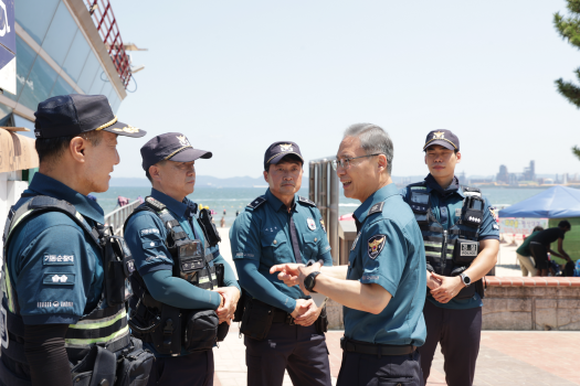 이날 여름경찰관서에 근무 중인 경찰관 및 지자체 공무원 등에 대해 격려한 후, 공중화장실 불법카메라 점검을 하는 등 해수욕장 전반에 대한 안전점검을 실시했다.