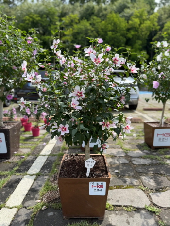 문경시의 이번 출품작은 가은읍 상괴리에 거주하는 (사)무궁화연대 무궁화 관리지도사 장우관·이선홍 부부의 작품으로 시에서는 백단심계(선덕) 2점, 홍단심계(칠보) 2점 등 총 7점의 무궁화 분화를 출품했다,