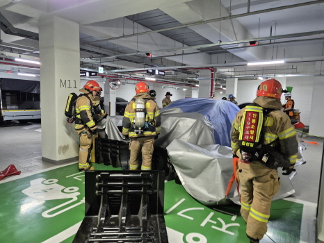 주요 추진 내용은 ▲질식소화포·비상벨·CCTV 설치 ▲주의사항 안내문 부착 ▲지하 충전시설의 지상 이전 유도 등이며 소방대원의 전기차 화재 대응능력 강화를 위해 전기차 구조 이해, 열폭주 대응, 침수 진압법 등 실전형 교육훈련도 정기적으로 운영하고 있다.