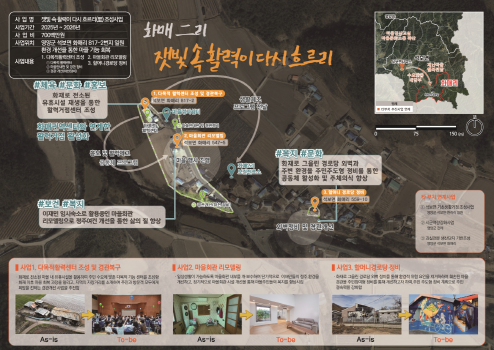첫 번째 화매2리 사업은 산불로 소실된 마을 공동체의 기능을 회복하고 주민들이 다시 삶의 터전을 일궈갈 수 있도록 다목적 공동이용시설을 조성하고 마을 경관 개선, 마을회관 리모델링, 화재로 훼손된 경로당 정비를 추진한다.