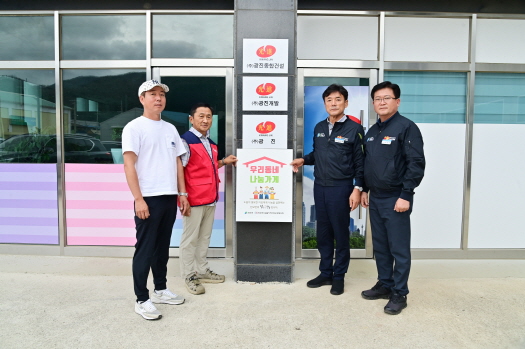청송군 진보면사무소와 지역사회보장협의체는 12일, 지역 나눔활동에 꾸준히 참여해 온 ㈜광진개발(대표 신재철)을 ‘우리동네나눔가게’로 지정하고 현판을 전달했다.
