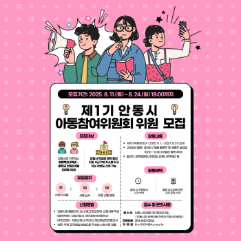 안동시 관계자는 “아동참여위원회 모집을 통해 아동들이 보다 적극적으로 사회에 참여하고, 정책의 주체로 성장할 수 있도록 지원할 것”이라며 “아이들의 의견이 시정에 실질적으로 반영될 수 있도록 하겠다”고 밝혔다.