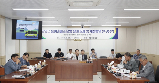 영양군의회(의장 김영범) 의원연구단체 ‘영양군 농어촌버스 운영 개선방안 연구회’는 8월 20일(수) 군의회 특별위원회실에서 영양군 농어촌 버스 운영 실태를 돌아보고 지역 실정에 맞는 개선 대책 등을 발굴하기 위한「영양군 농어촌버스 운영 실태 조사 및 개선방안 연구용역」착수보고회를 개최했다.