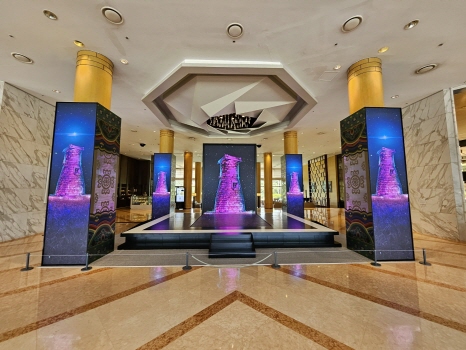 그리고 바닥 LED와 수직형 LED를 결합하고, 이를 둘러싼 4개의 기둥 전면부에 LED 화면을 더해 웅장하고 독창적인 서사의 미디어아트를 구현하고 있다.