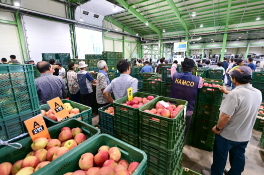 개장 첫날 사과 2,205상자가 경매에 올라왔으며, 출하 품종은 홍로가 주를 이뤘다. 20kg 상자 기준 평균 낙찰가는 홍로가 94,057원으로, 지난해 같은 기간보다 15% 이상 높은 가격에 거래됐다.