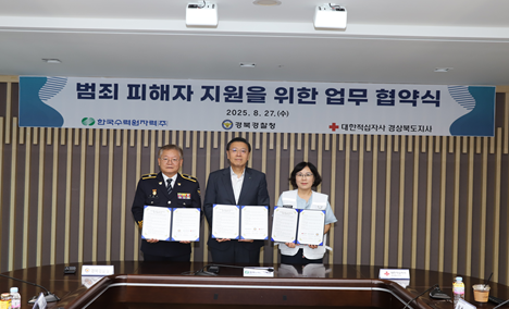 경북경찰청(청장 오부명)은 8월 27일 한국수력원자력 경주 본사에서 범죄 피해자 보호와 지원을 위한 업무협약을 체결했다.