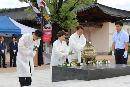 김호섭 경북도 복지건강국장은 “경술국치로 우리 민족은 일제 억압과 수탈에 고통을 겪었지만, 강철보다 강한 민족정신으로 끝내 나라를 되찾았다”며 “독립유공자와 순국선열의 숭고한 뜻을 이어받아 도민의 나라 사랑 정신을 더욱 두텁게 키워나가고, 경주에서 개최하는 APEC의 성공적 개최에 최선을 다하겠다”고 밝혔다.