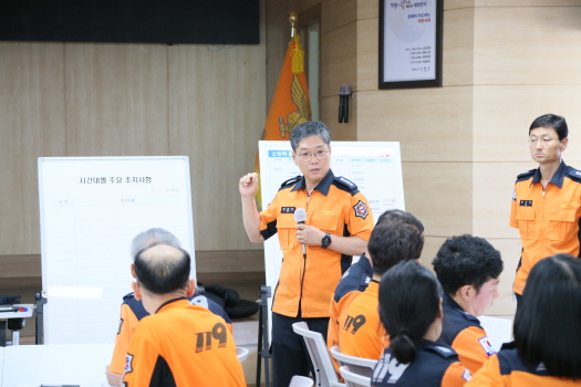 이번 훈련은 실제 태풍 발생 상황을 그대로 가정해 진행됐으며 긴급구조통제단의 신속한 가동과 효율적 임무 수행을 목표로 했다. 훈련 과정에서는 ▲각 부·반별 임무와 역할 철저 숙지 ▲재난 유형별 상황 부여 및 반복 훈련 ▲현장 지휘권 확립을 통한 통제 능력 제고 등 실전과 같은 절차가 이어졌다. 특히, 다량의 119신고가 몰릴 경우 효율적으로 대응할 수 있도록 기존의 통제단 임무 지정표를 보완하고, 신고 접수·분류·지령·관제를 전담하는 ‘상황관리부’ 기능을 대폭 강화하여 신고 누락이나 지연을 방지하는 데 집중했다.