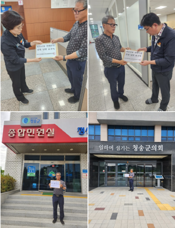박주윤 위원장은 당초 윤경희 청송군수와 청송군의회 심상휴 의장에게 전하려 했으나 여의치 못해 군청 민원실과 의회 사무국에 전했다고 밝혔다.