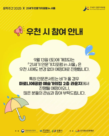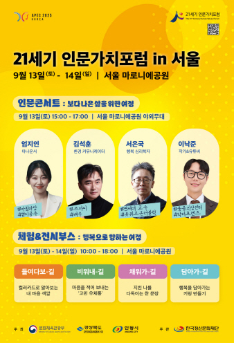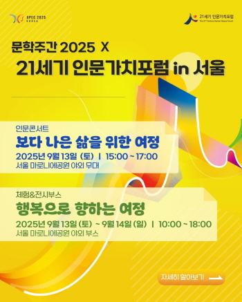 문화체육관광부, 경상북도, 안동시가 공동 주최하고 한국정신문화재단이 주관하는「제12회 21세기 인문가치포럼」사전포럼이 오는 9월 13일부터 14일까지 이틀간 서울 마로니에공원에서 열린다. 이번 행사는 한국문화예술위원회가 주관하는「2025 문학주간」과 연계해, 문학과 인문이 어우러진 다채로운 프로그램으로 꾸며진다.