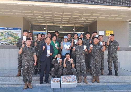 영주시자원봉사센터는 11일 육군 제50사단 영주대대를 방문해 정성껏 준비한 수제 쿠키와 허브차를 전달했다.