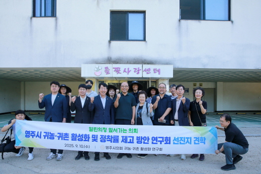 영주시의회 의원연구단체 ‘귀농귀촌 활성화 및 정착률 제고 방안 연구회’는 10일 강원특별자치도 인제군을 방문하여 귀농귀촌종합지원센터, 냇강마을, 신월리 달뜨는 마을 등 귀농귀촌 활성화 우수사례 현장을 견학했다.