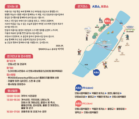 안동시 관계자는 “이번 행사가 안동시에 활력을 불어넣는 계기가 되길 바라며, 많은 분이 참여해 선선한 가을 날씨 속에서 건강도 챙기고 즐거운 시간을 보내시길 바란다”고 전했다.