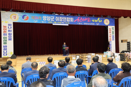 영양군이장연합회(회장 손상득)는 9월 25일 영양군민회관에서 오도창 군수, 김영범 군의장 및 115개리 이장과 가족 등 300여 명이 참석한 가운데 '제24회 영양군이장연합회 한마음대회'를 개최했다.