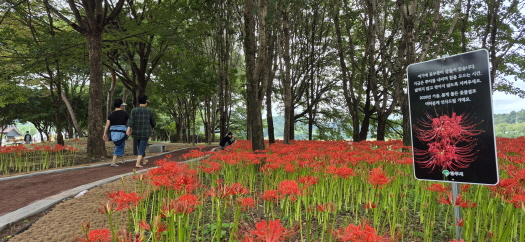 두 공원은 총 면적 약 6천㎡(제곱미터)에 달하며, 12만 본의 꽃무릇이 식재돼 가을을 대표하는 새로운 경관으로 자리매김하고 있다. 산책로를 따라 이어지는 붉은 물결은 장관을 이루며 주말을 중심으로 많은 시민과 관광객이 찾아 지역의 가을 명소로 각광받고 있다.