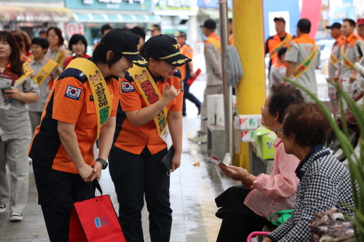 발대식 후에는 전통시장 일대에서 화재예방 캠페인이 진행되어, 방문객과 상인들을 대상으로 주택용 소방시설 설치와 방화문 닫기 안전문화 운동 등을 홍보하며 화재예방 안전문화 확산에 앞장섰다.