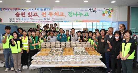 이번 행사에는 영양군실버봉사단(10명), 빵나무봉사단(5명) 그리고 개인 자원봉사자 등 50여 명이 참여했으며, 취약계층 200가구와 산불 피해 이재민 100가구에 온정을 가득 담은 송편과 즉석밥 등 생필품을 전달했다.