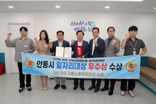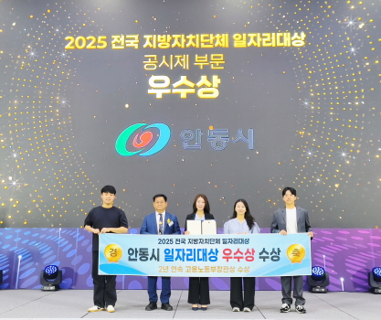 ‘2025 전국 지방자치단체 일자리대상’은 매년 고용노동부가 전국 243개 광역 및 기초지자체를 대상으로 매년 지역 일자리정책 추진 성과를 평가해 우수 자치단체를 선정하는 국내 대표적인 일자리 분야 시상이다. 안동시는 공시제 부문에서 1차 시․도 평가와 2차 중앙 평가를 거쳐 우수 자치단체로 이름을 올렸다.