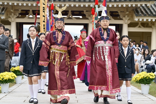 개막식은 경북도립예술단 교향악단과 경주시립 신라고취대의 식전공연으로 시작됐다. 이어 상영된 AI 영상 ‘평화와 화합의 메시지’는 삼국통일의 정신을 계승해 한반도의 통일과 세계의 화합을 이루고자 하는 의지를 표명했다.
