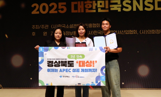 경북도가 ‘제15회 2025 대한민국 SNS 대상’ 광역자치단체 부문 대상을 받으며, 3년 연속 대한민국 최고의 SNS 소통 지자체로 자리매김했다.
