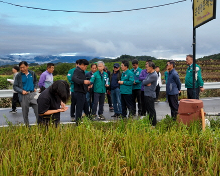 점검단은 벼 깨씨무늬병 피해 논과 생리장해 우려가 있는 과수농가를 직접 살피며 피해 규모를 확인하고 복구 대책과 지원 방안을 논의했다.
