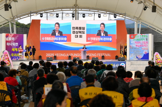영주시는 22일 풍기읍 남원천 일원 풍기인삼축제장 주무대에서 민족통일협의회 창설 44주년을 기념하는 ‘2025 민족통일경상북도대회’와 ‘제56회 한민족통일문화제전 시상식’을 성황리에 개최했다.