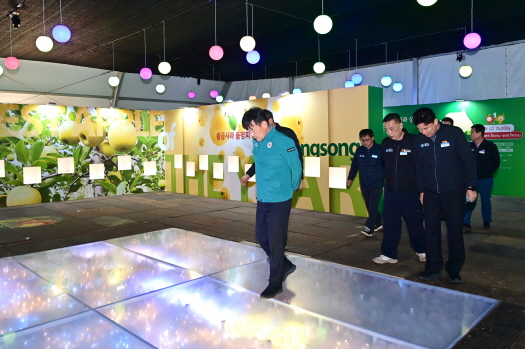 윤 군수는 이날 현장에서 직접 유관기관 점검자와 함께 행사장 내 가설건축물, 야외무대, 조형물을 점검하고 경찰, 소방, 가스, 전기 분야별로 안전 위해 요소가 없는지 꼼꼼히 확인하였으며, 관람객 입장에서 동선과 부스 간 배치 형태까지 세밀하게 점검했다.