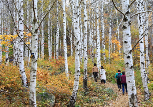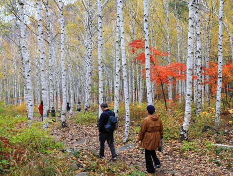 등산로를 따라 전망대로 올라가면 고도 800m를 훌쩍 넘기는 높이에서 자작나무숲 일대를 조감할 수 있다. 빼곡하게 수놓인 나무의 하얀 수피들 사이로 알록달록 피어오른 단풍은 늘상 봐오던 단풍나무들과는 색다른 감동을 선사한다.